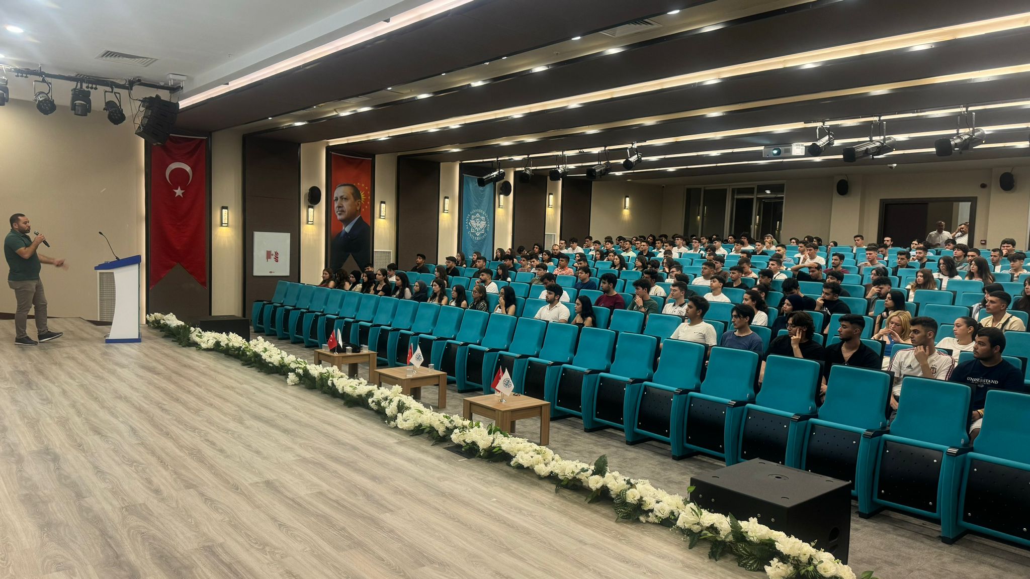 Programın ikinci bölümünde, üniversitemize yeni kayıt olan ve İngilizce hazırlık eğitimi alacak olan öğrencilere Müdür Yardımcısı Öğr. Gör. Mustafa UĞURLU ve Hazırlık Programı Koordinatörü Öğr. Gör. İbrahim ŞAHİN tarafından Yabancı Diller Yüksekokulu ve İngilizce Hazırlık Programının içeriği ve işleyişiyle ilgili bilgiler verilmiştir.