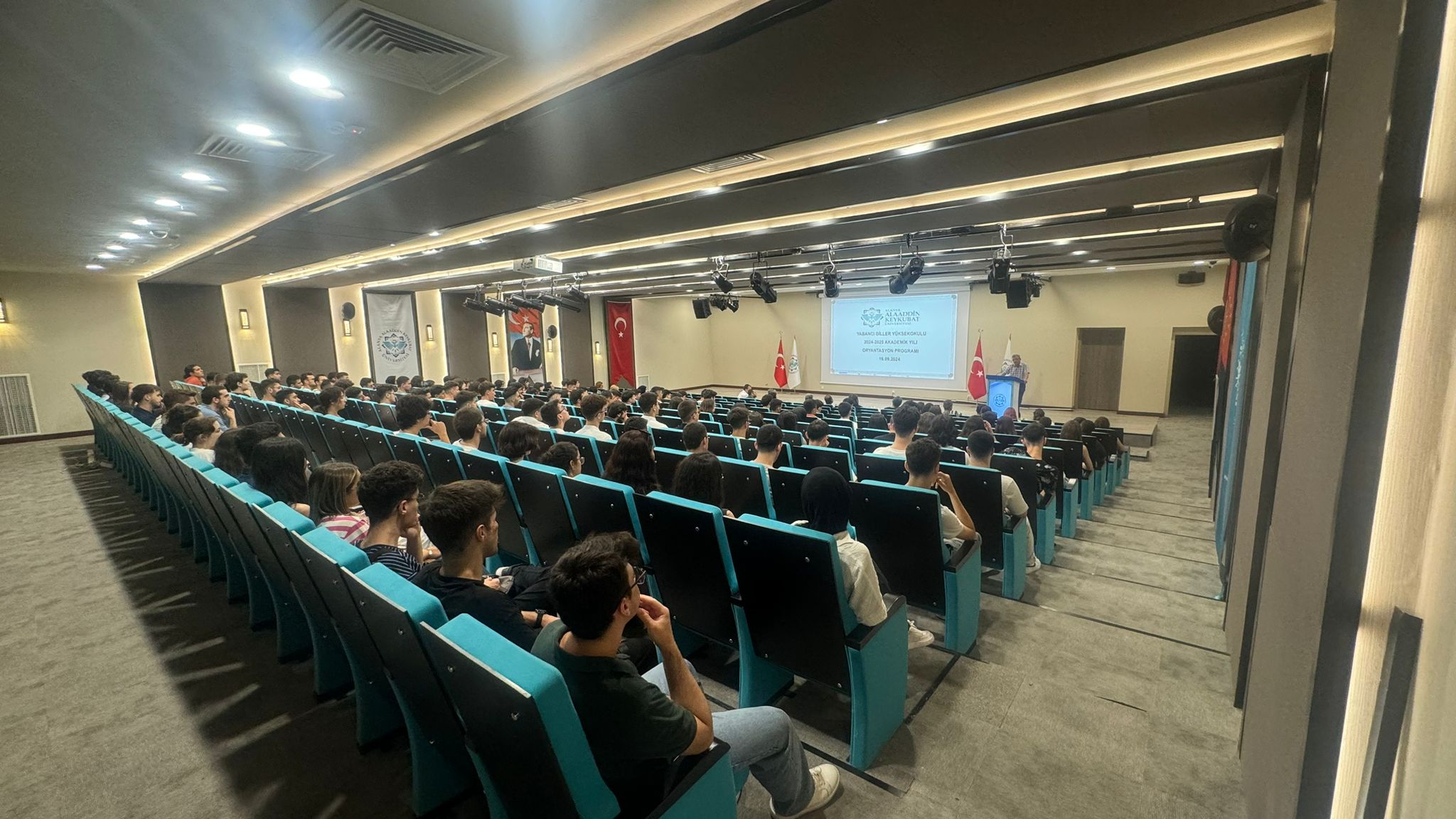 2024-2025 Akademik Yılı, Yabancı Diller Yüksekokulu Zorunlu İngilizce Hazırlık Sınıfları için Oryantasyon Programı 16.09.2024 Pazartesi günü saat 13.30'da ALKÜ Rektörlük Binası Alev Alatlı Konferans Salonunda 192 öğrencinin katılımıyla gerçekleştirilmiştir.